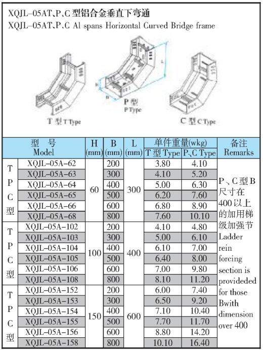 XQJL-05AT、P、C型鋁合金垂直下彎通